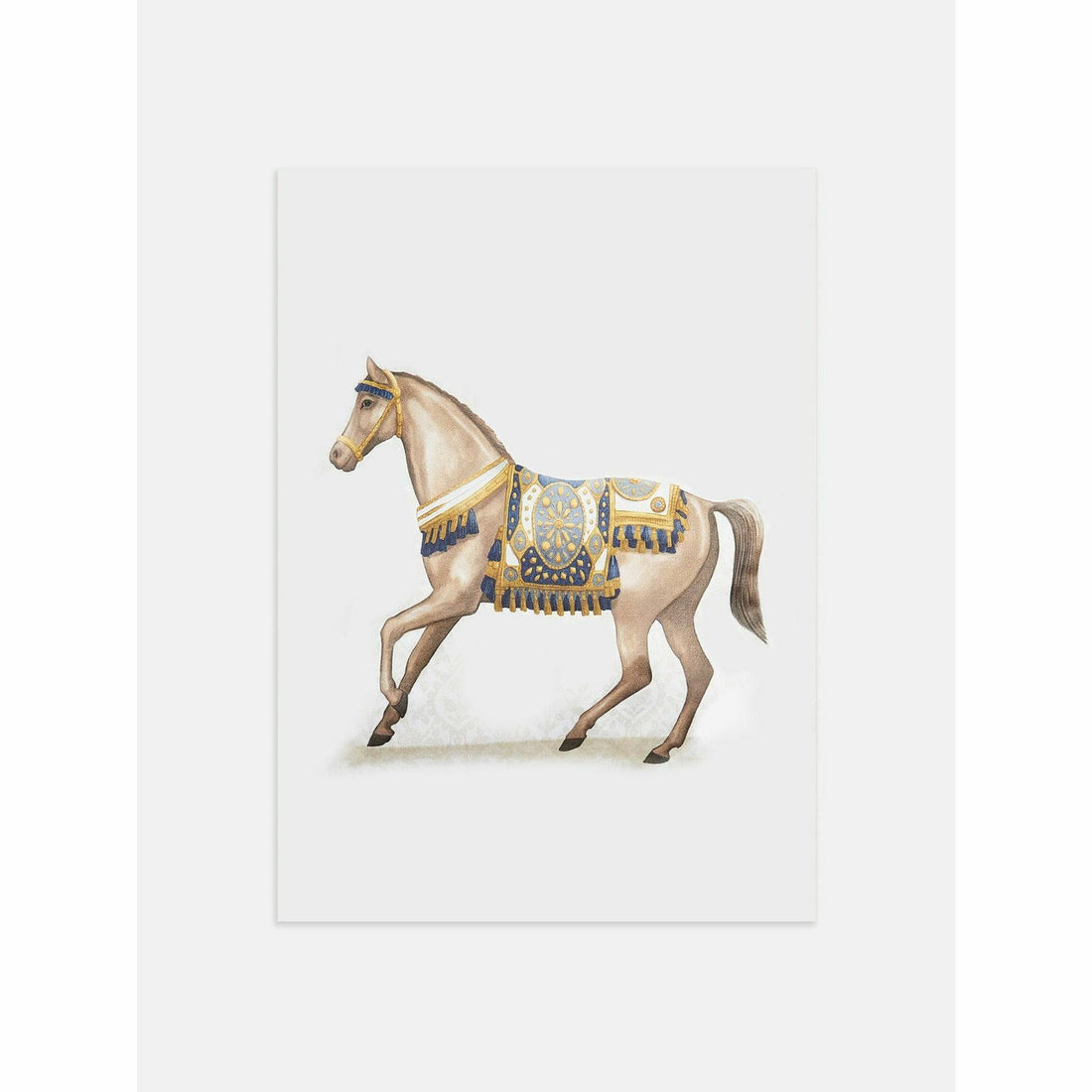 A beautiful watercolor illustration of an elegant horse in golden tones. This digital poster adds...