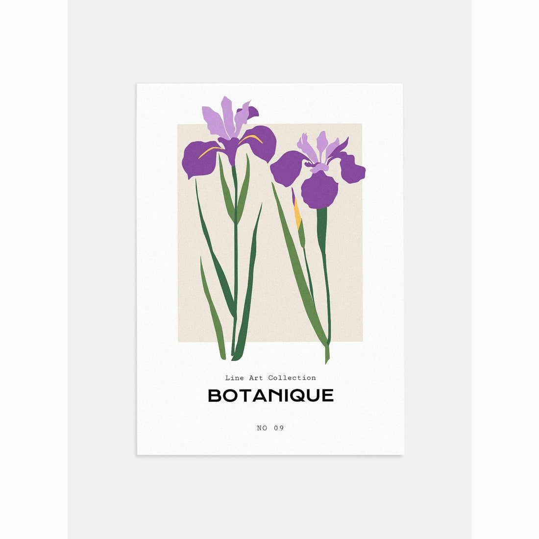 This poster for room decor features a minimalist design of purple wildflowers against an earthy...