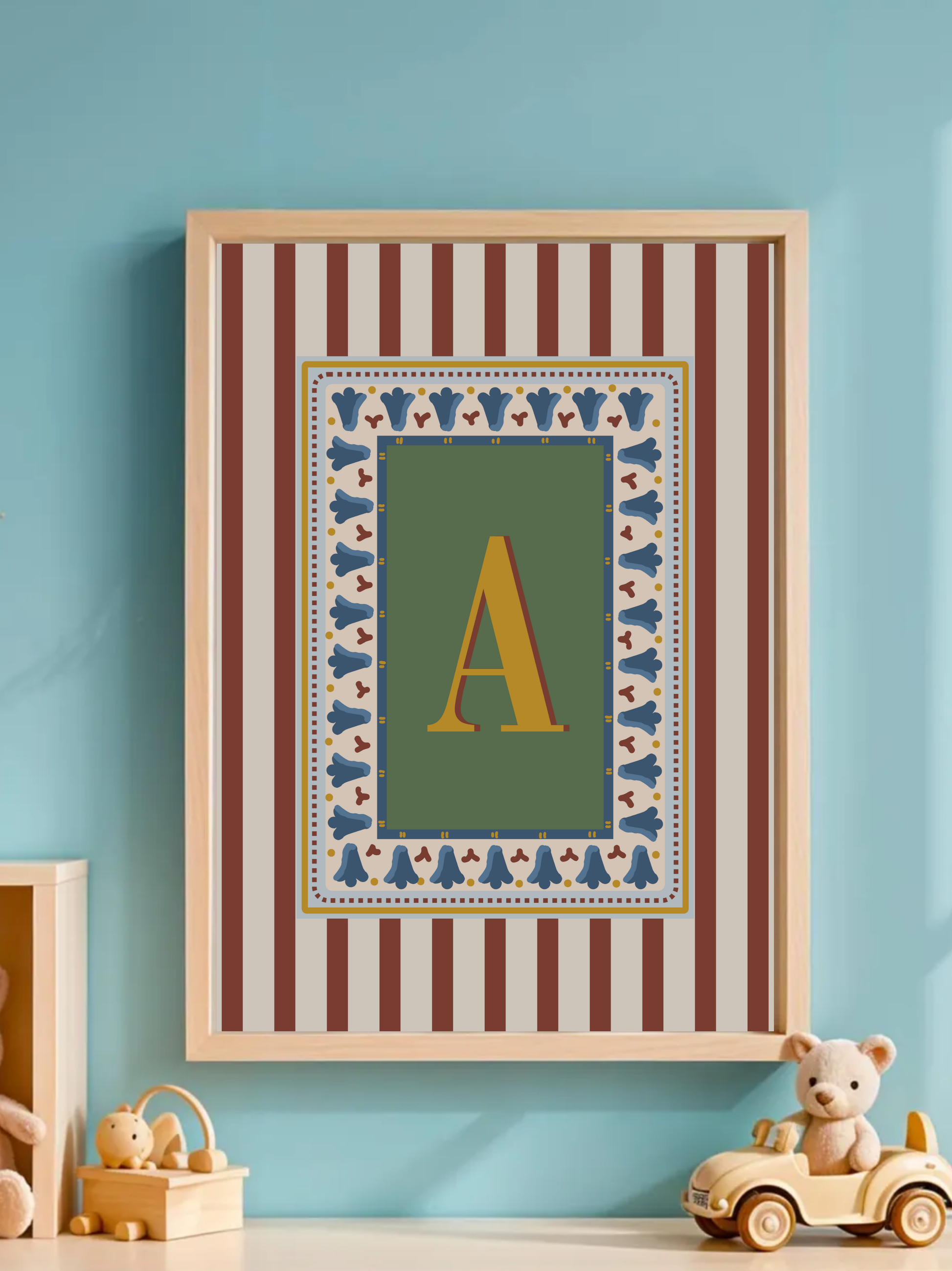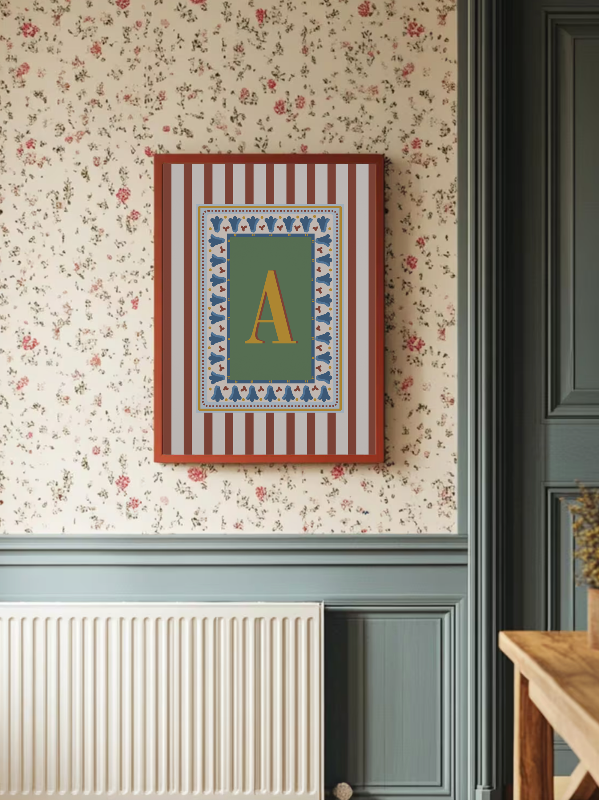 Make your space personal with this bold striped red letter print. Perfect for home offices, bedrooms, or as a thoughtful gift, this custom artwork adds a modern pop of color with a minimalist touch.